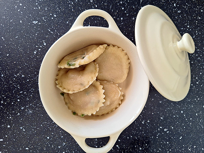 Para revalorizar la corvina americana, desarrollamos un plato listo para cocinar y de interés para el consumidor: raviolis de Codium rellenos de corvina. Aunque el mercado ofrece una amplia variedad de pastas frescas, en España apenas existen opciones elaboradas con pescado, a diferencia de países como Italia. Este prototipo abre una nueva forma de incorporar pescado a la dieta, respondiendo también a la creciente demanda de pasta fresca.