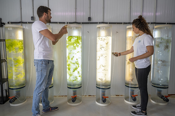 Para producir volúmenes mayores, muchas empresas recurren a tanques de cultivo, una tecnología establecida desde hace décadas y empleada por compañías como Algaplus (Portugal), Seakura (Israel) o Mediterranean Algae (España). Los tanques permiten cultivar un amplio abanico de especies foliosas y filamentosas —Ulva, Codium, Gracilaria, Chondracanthus, entre otras— con costes moderados y buena escalabilidad.
